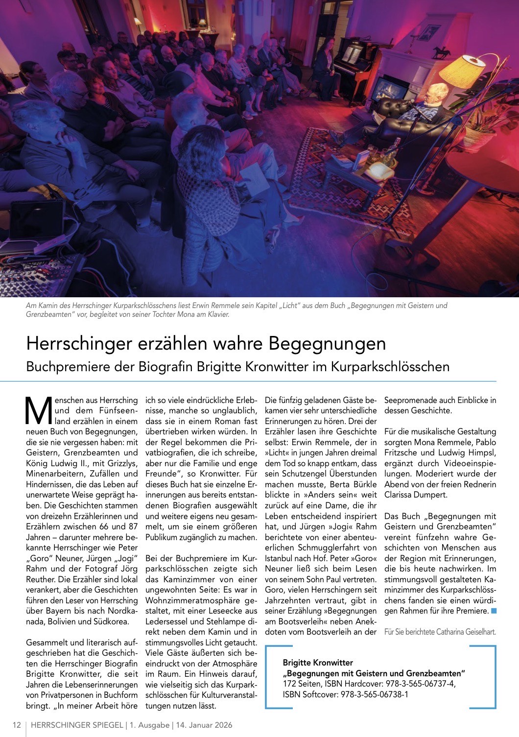 Der Herrschinger Spiegel berichtet über die Premiere meines Buches „Begegnungen mit Geistern und Grenzbeamten“ im Herrschinger Kurparkschlösschen.