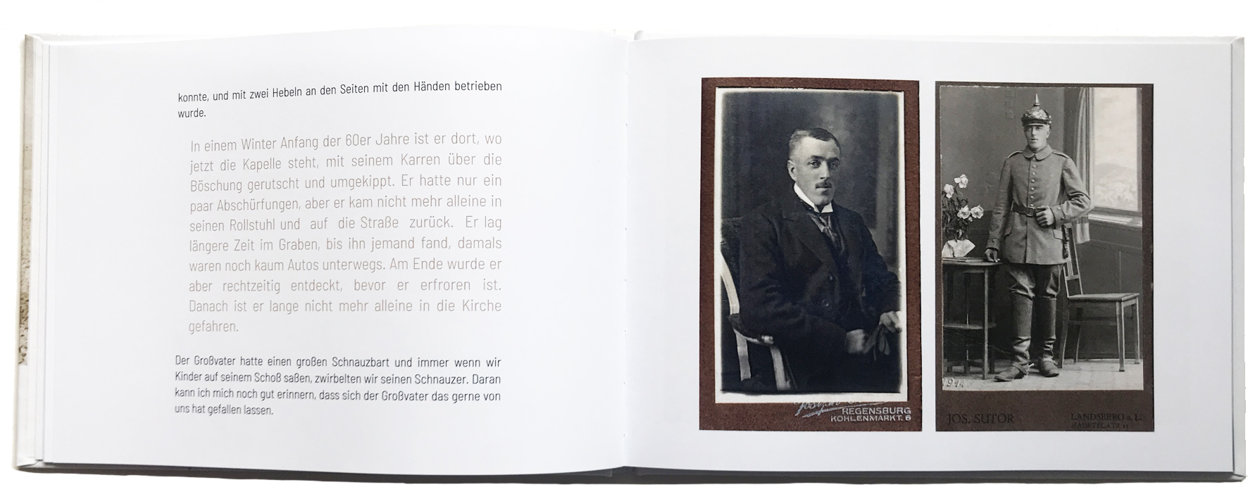Kompakte Familienchronik mit Schwerpunkt auf Erinnerungen, Fotografien und genealogischen Daten.
