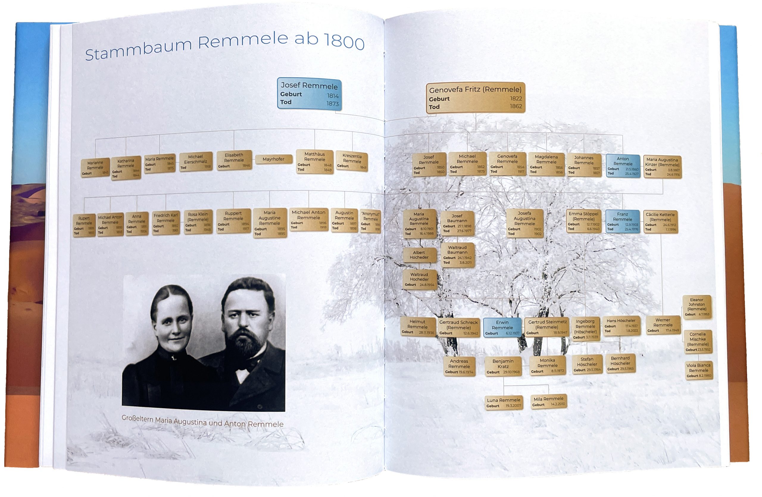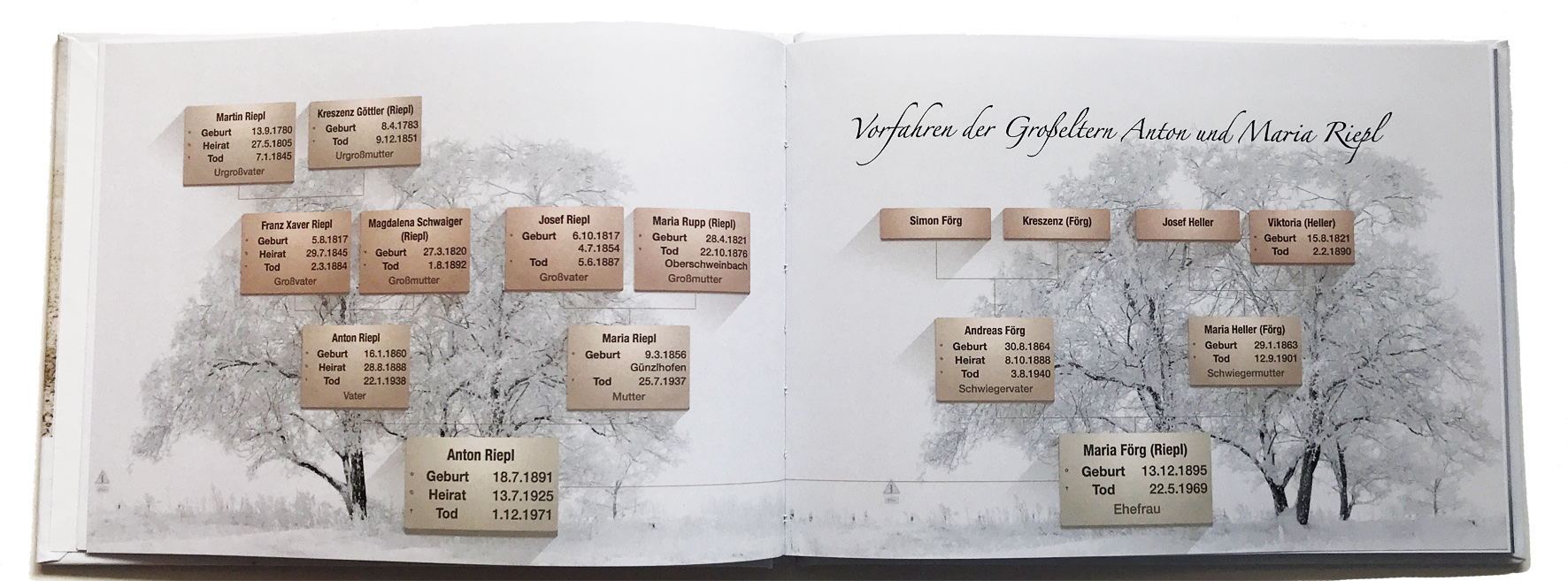 444 Seiten, zahlreiche Fotos und Dokumente, vier Stammbäume bis zu den Ururgroßeltern